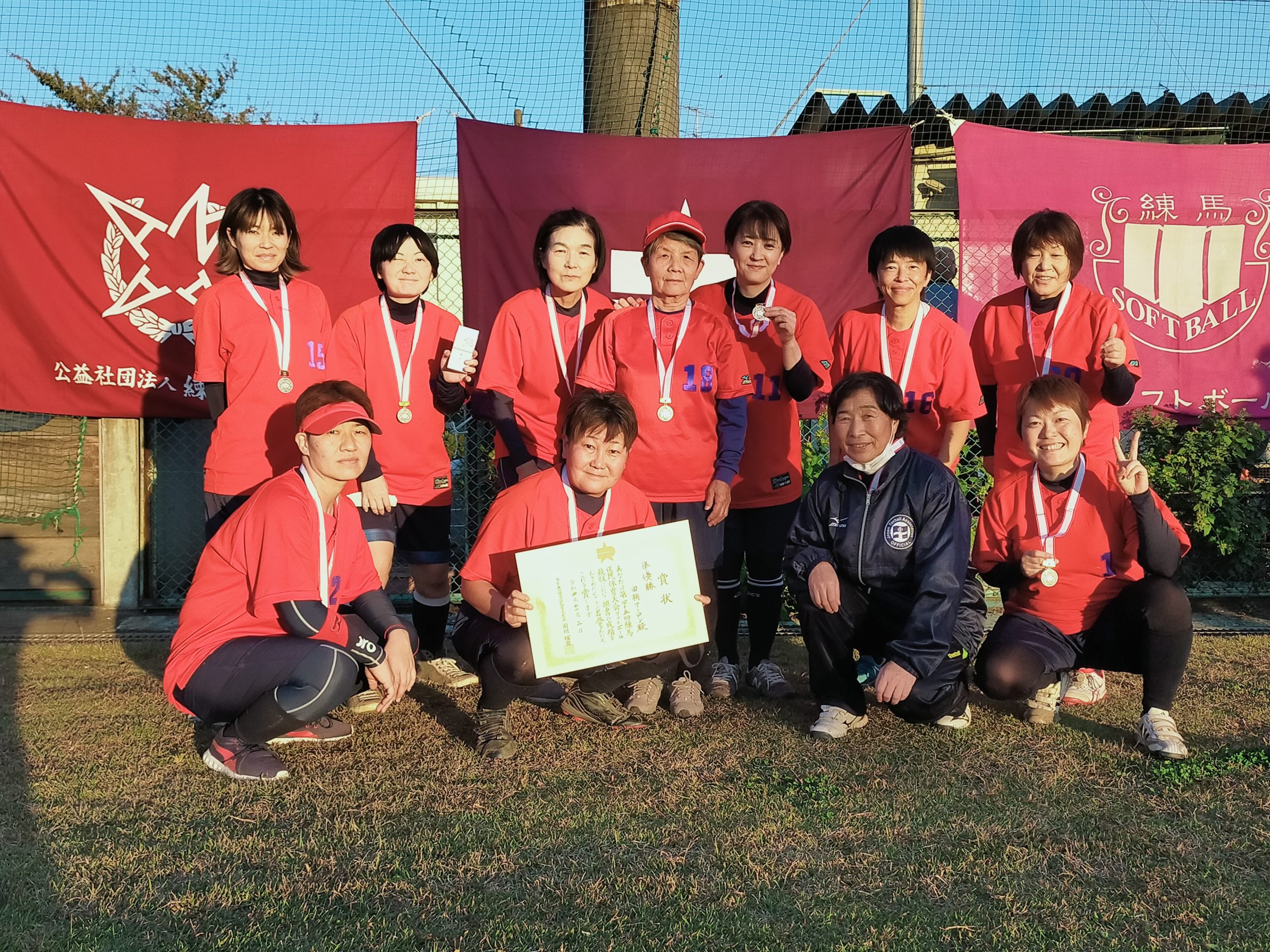 | 2022年 区民体育大会 | 優 勝 石神井スマイル 準優勝 石神井台小女子ソフトボール部 第三位 上北小ソフトボール部 順位表 ▶ | 優 勝 ホワイトソックス ▶ 準優勝 田柄アーロン ▶ 第三位 練馬ラディッシュ ▶ 順位表 ▶ | 優 勝 豊渓ビッグストーンズ ▶ 準優勝 大北ダンディーズ ▶ 第三位 大泉西チェクロス ▶ 順位表 ▶ | 優 勝 石神井フェニックス ▶ 準優勝 練馬シニアセブン ▶ 第三位 大泉東シニア ▶ 順位表 ▶ |