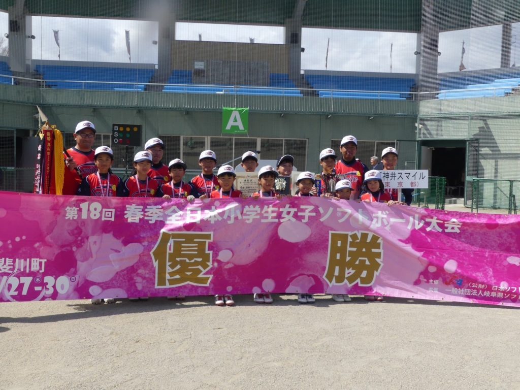 3月30日に岐阜県揖斐川で行われた第18回春季全日本小学生女子大会(全40チーム参加)にて、石神井スマイルが初優勝しました!!